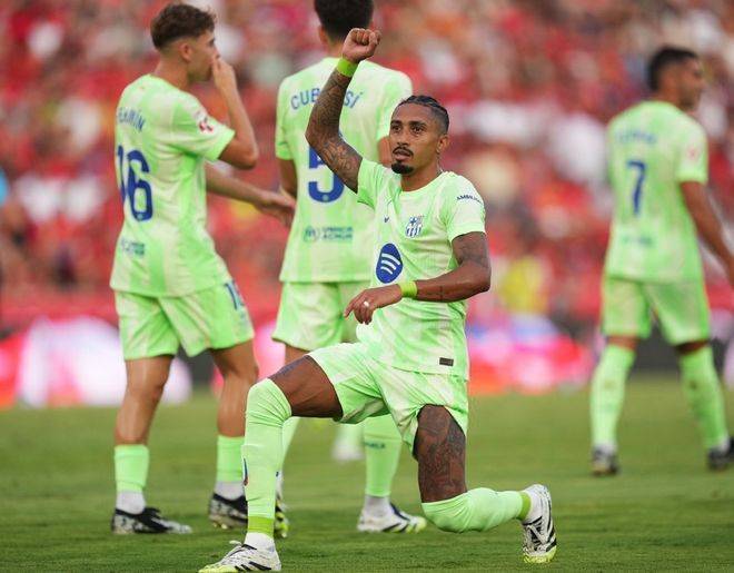随着主裁判一声哨响,巴塞罗那就在客场围着马洛卡猛攻,并且在第8分钟就取得了比分上的领先,亚马尔右路送出一脚传中,拉菲尼亚甩开防守球员后,门前近在咫尺的位置头球攻门,帮助球队取得了1-0的梦幻开局,第25分钟巴萨扩大领先优势,亚马尔的远射被挡出后,皮球落到了费兰托雷斯的脚下,后者稍作调整后远射建功,比分来到了2-0。